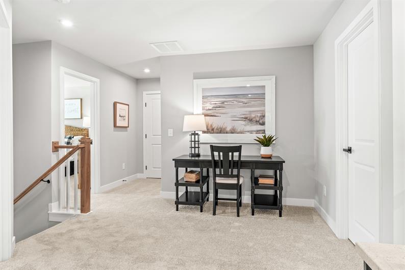 The Bethany offers convenient one-level living. An elegant dining room greets you as you enter the foyer. In the kitchen, a breakfast bar opens to the two-story great room, ideal for entertaining. Luxury lives in the owner's suite, with an enormous walk-in closet and dual vanities. The owner’s bath can be upgraded to include a soaking tub and shower. The laundry area is just steps away for ultimate convenience. Upstairs, a loft, two additional bedrooms with walk-in closets and a full bath provide plenty of comfort and extra living space. The one-car garage Bethany is breathtaking.
