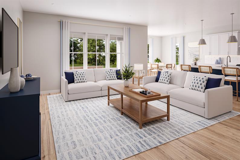 The Charles single-family home is every bit as versatile as it is beautiful. Experience a generously designed floor plan with flexible living areas throughout. The bright great room flows seamlessly into the gourmet kitchen and dining space, keeping you connected to all the action. Enjoy a standard patio or optional covered porch for those pleasant evenings and utilize the convenient entry foyer with under-stairs storage to stay organized. A unique first-floor bedroom with adjacent bath provides perfect accommodations for guests or multi-generational living. Upstairs, you’ll find a welcoming loft area plus two additional bedrooms for growing families. Your private owner’s suite features a spacious walk-in closet and spa-inspired split vanity bath. Come home to the Charles today!