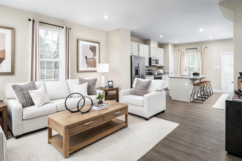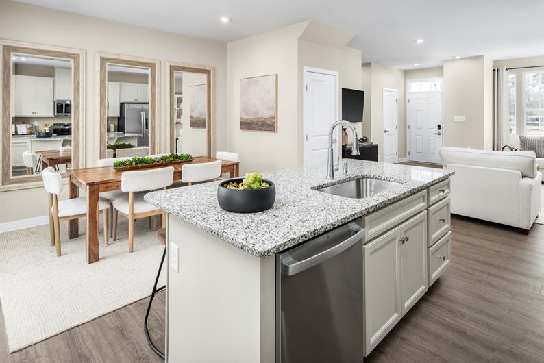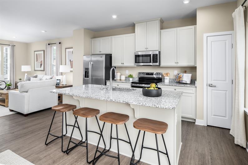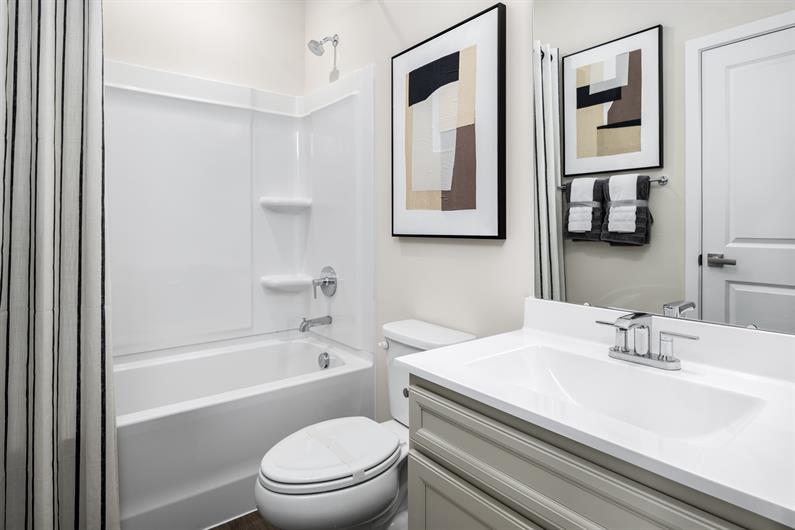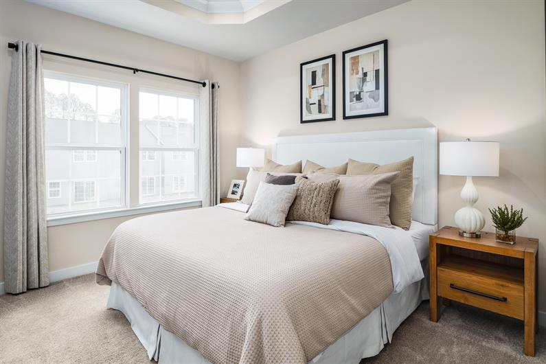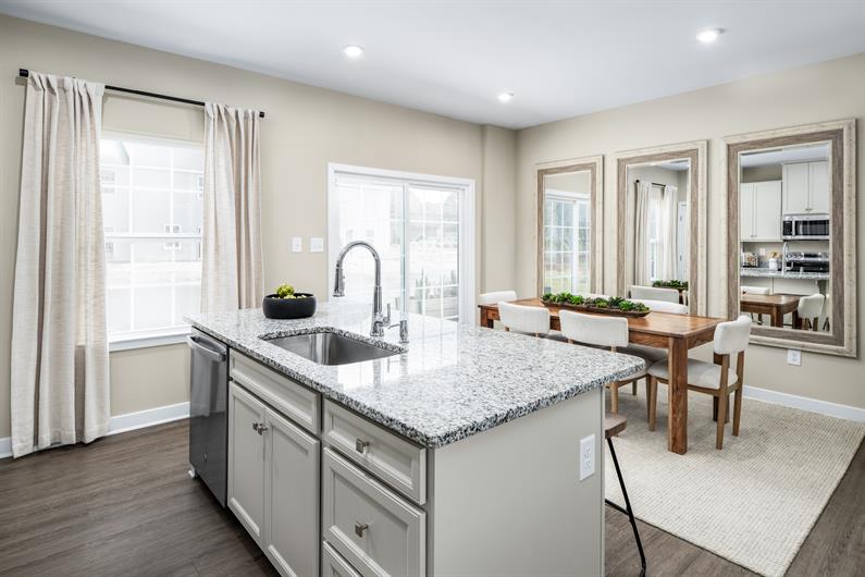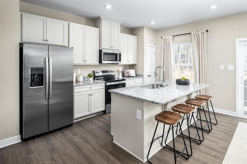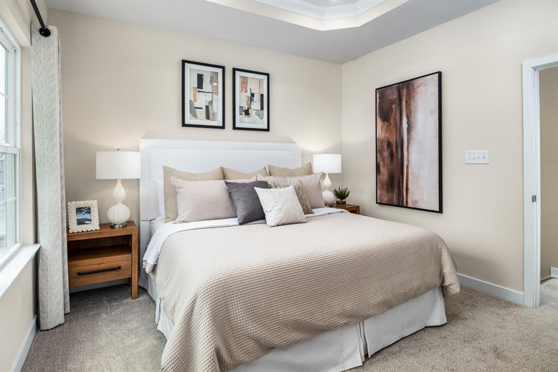 Lots of living space and an abundance of natural light make the Beethoven a townhome that feels like a single-family home. On the main level, a huge Kitchen, with island, provides plenty of room for cooking and entertaining and opens to a large airy Living Room. Don’t forget to add the optional powder room. Upstairs are two spacious bedrooms with ample closet space, a hall bath, and a generous Owner’s Bedroom that features a tray ceiling and a huge walk-in closet. A separate Owner’s Bath features a dual vanity and 5’ shower with dual showerheads. The Beethoven features several different lower level plans that vary by area, but all offer even more living area, with optional recreation room, and powder room. The elevations are classic colonial facades, with a variety of convenient amenities, such as box bay windows and covered entryways, available on some.