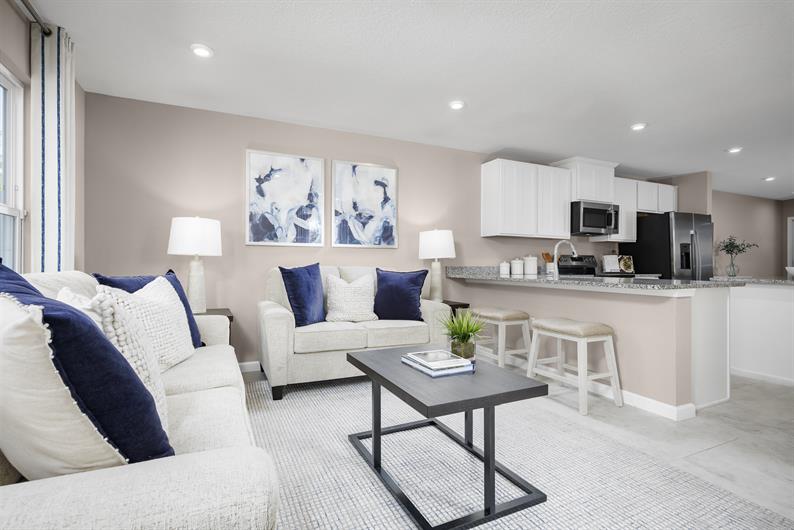 Discover all the style you desire inside The Flamingo floor plan. A convenient one-car garage opens to a welcoming foyer, from which you can see all this gorgeous home has to offer. The formal dining space is ideal for family dinners. In the gourmet kitchen, an optional island provides extra cooking space. Relax either in the spacious great room or outside on the scenic lanai. Upstairs, two bedrooms and a full bath provide comfort for family or guests. Your luxurious owner’s suite includes a stunning dual vanity bath and a huge walk-in closet. See how you can have it all inside the Flamingo.