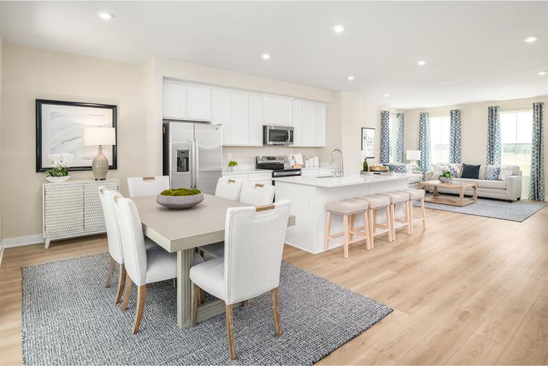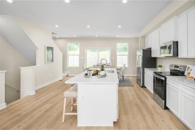 The Overture is a townhome for those who value luxury and space. Upon entering the ground level foyer or two-car garage, find a finished rec room or first-floor guest suite. Up the wide staircase, enter the main level where an inviting kitchen and dining space overlook the great room, ideal for entertaining. Natural light fills this space from the rear wall’s sliding glass doors and windows. On the top level, a full bath and convenient laundry sit just outside two spacious bedrooms. Your luxury primary suite includes a stunning walk-in closet and dual vanity bath. Welcome home to The Overture.